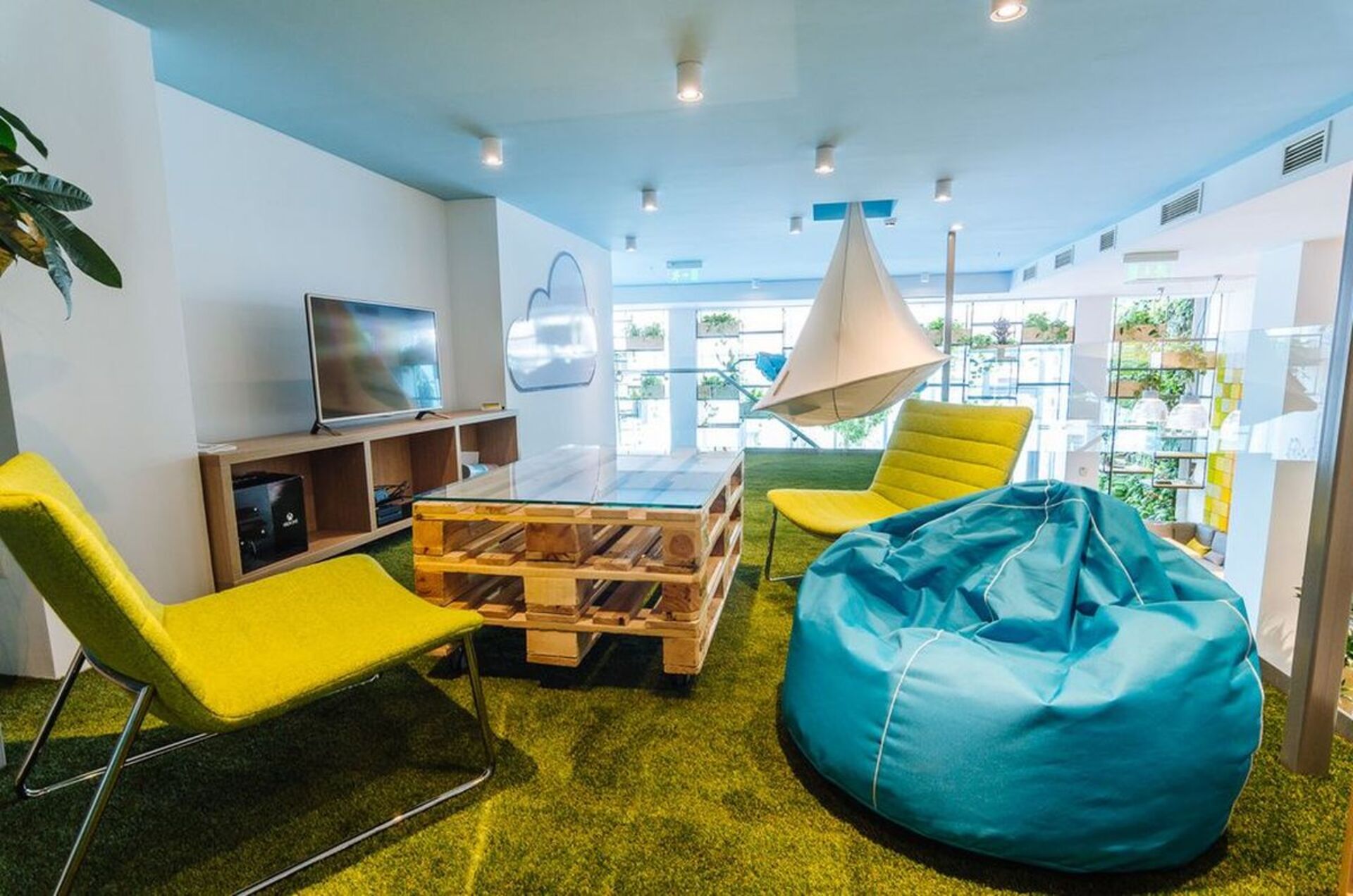 Из стандартных офисных стульев, маленького столика и недорогих аксессуаров можно создать уютный уголок для кофе-пауз. Добавьте пледы, подушки или настенные постеры, чтобы зона стала действительно привлекательной.