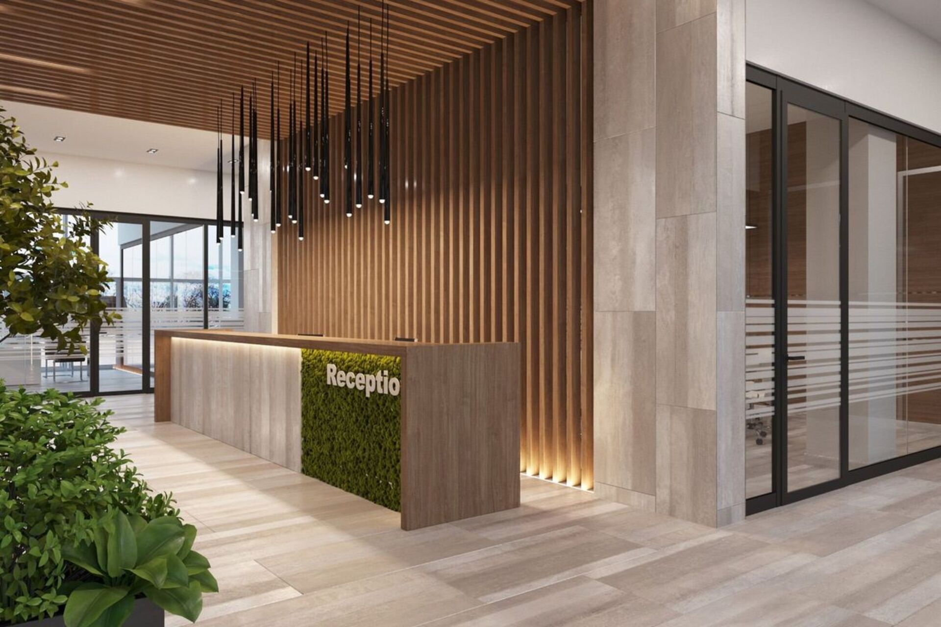 Оживить приемную зону и создать расслабляющую атмосферу для посетителей и сотрудников помогут живые растения или стабилизированных мох. Они не только смогут украсить ваше пространство, но и, как показали исследования, могут улучшить качество воздуха, снизить уровень стресса и повысить производительность.