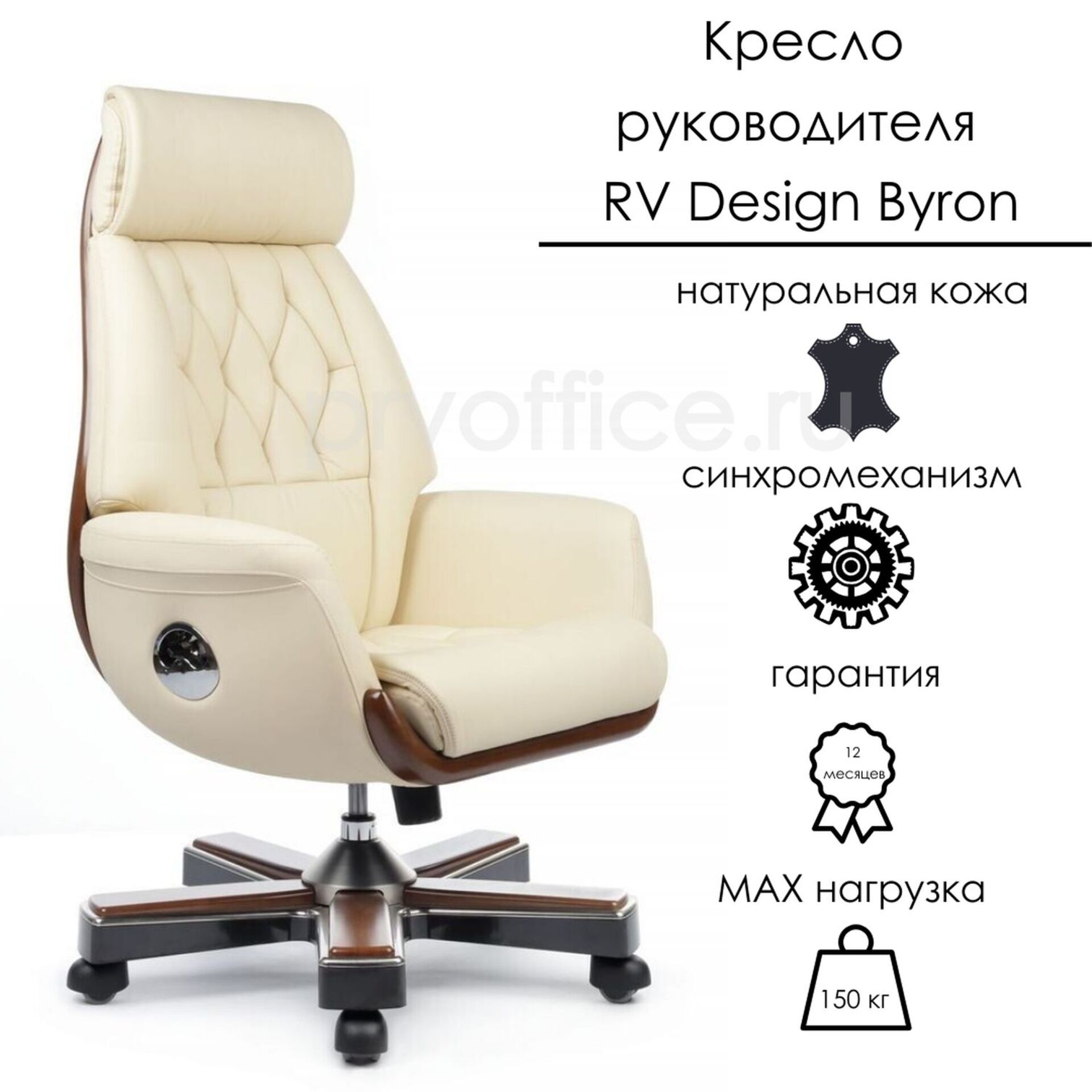 Кресло руководителя премиум-класса RV Design Byron - невероятно удобное офисное кресло из натуральной кожи. Комфорт, обтекаемые формы и эффектный дизайн кресла Byron несомненно придутся по вкусу ценителям классического стиля в интерьере, а вставки, имитирующие натуральное дерево, добавят благородности вашему пространству. Встроенный синхромеханизм свободного качания обеспечит фиксацию кресла в пяти положениях, а эффект "анти-шок" позволит избежать удара или неожиданного "опрокидывания" спинки при снятии блокировки. Предельная нагрузка - 150 кг.