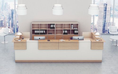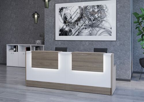 Стойки из ЛДСП стоят недорого, при этом срок их службы составляет много лет, что обуславливает высокую популярность изделий. Наша мебель для приемной отличается прекрасным качеством, полной безопасностью – ЛДСП не содержит вредных компонентов, что подтверждается сертификатами. Уход за столами и стойками очень прост, их поверхность гигиенична, легко моется, гладкая и приятная на ощупь.
