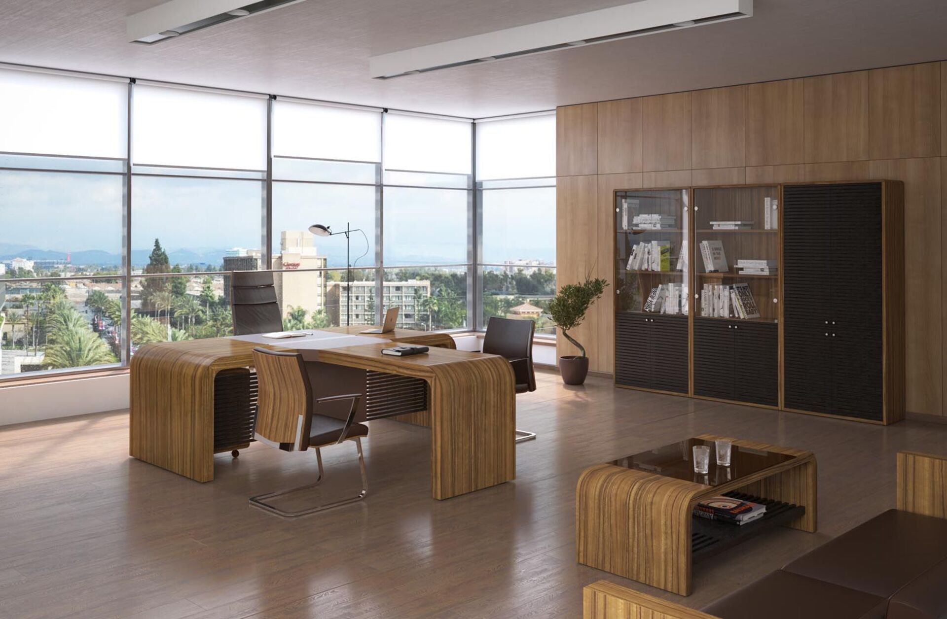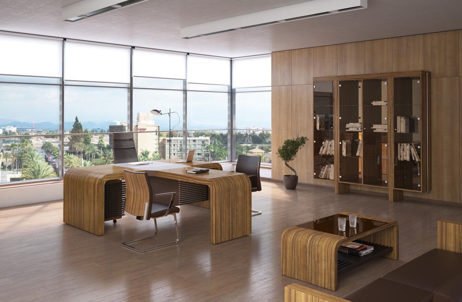 2. необычная форма мебели за счет закругленных углов письменных столов, брифингов, журнальных столиков;