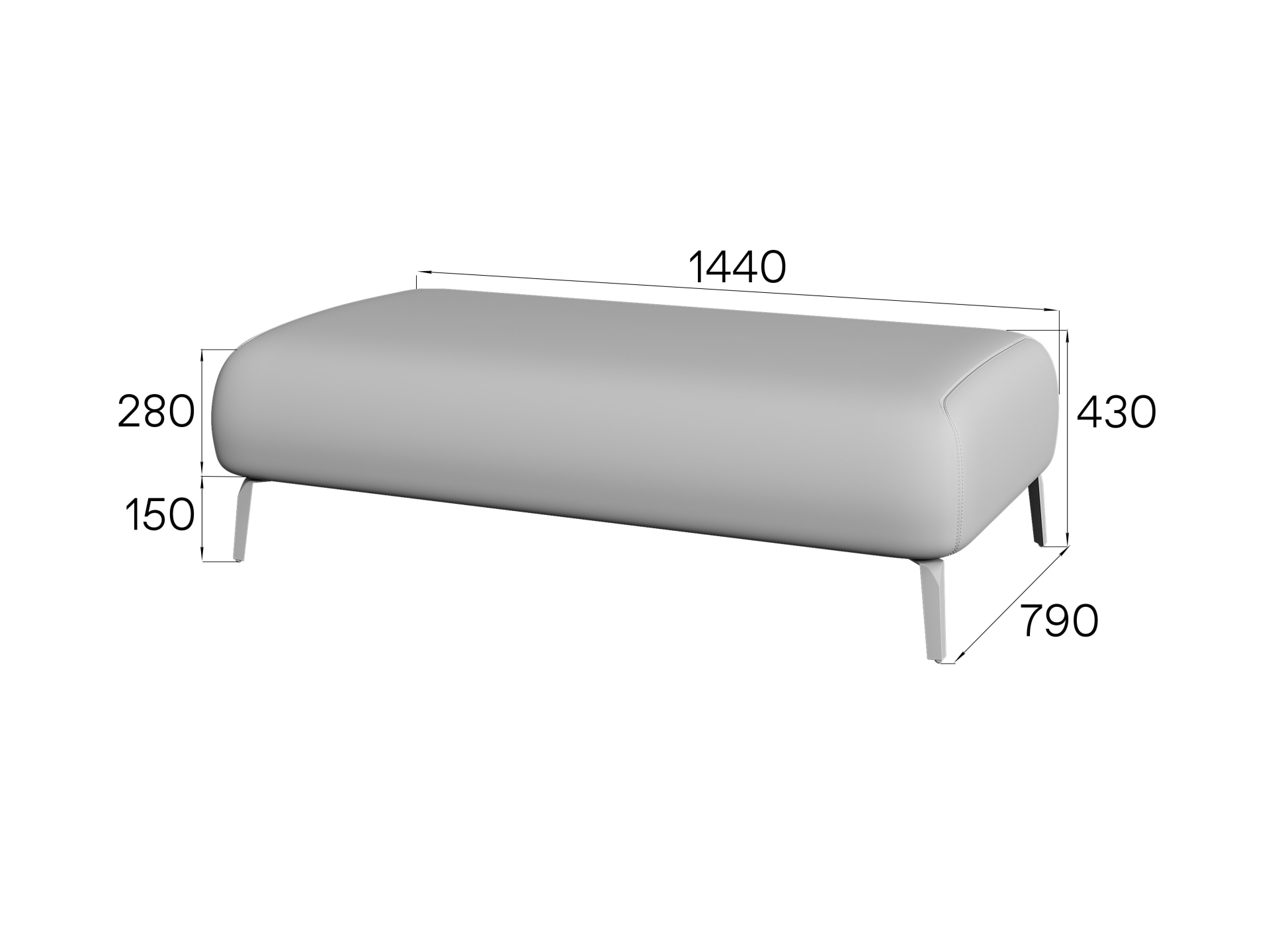 PRATO Пуф 112*56 кожа 20*20 PRATO 2 45 Dakota black