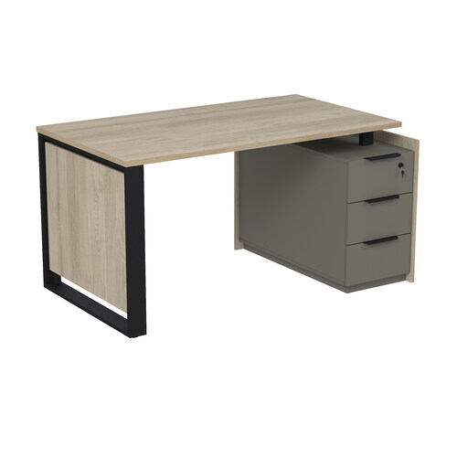 Стол рабочий на опорной угловой тумбе, с ящиками (метабокс), с замком 15СОУ.1408