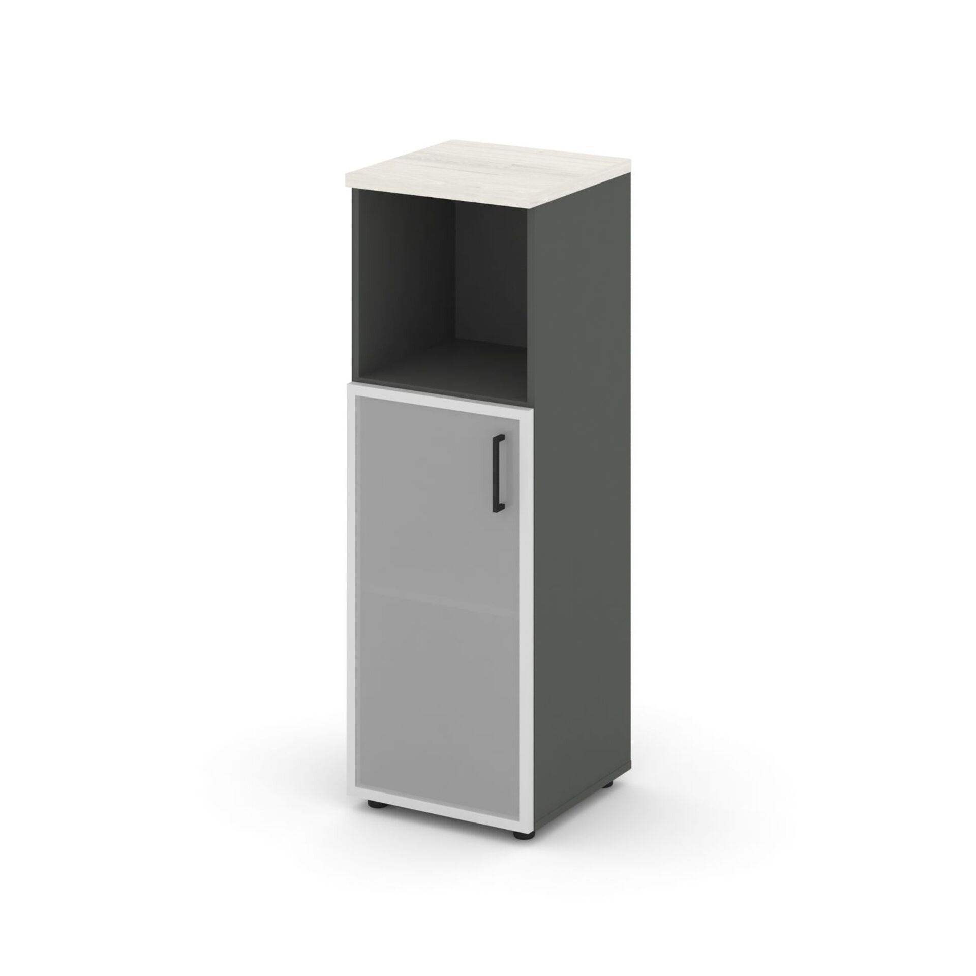 Шкаф средний узкий левый (1 низкий фасад стекло сатин в раме) SN.STU-203(L)