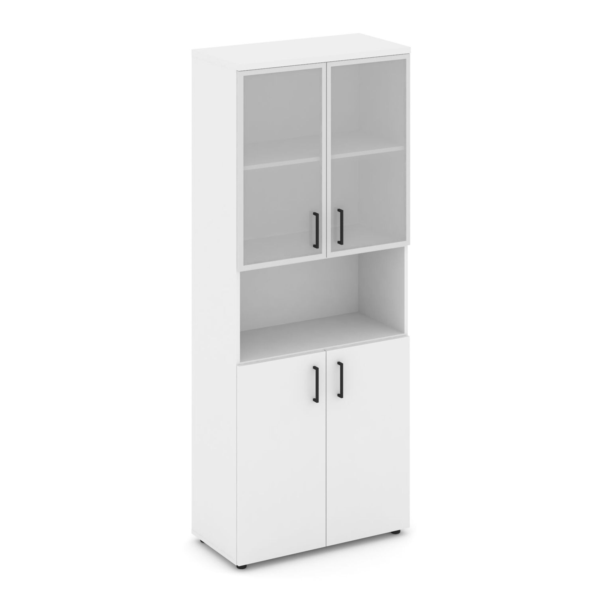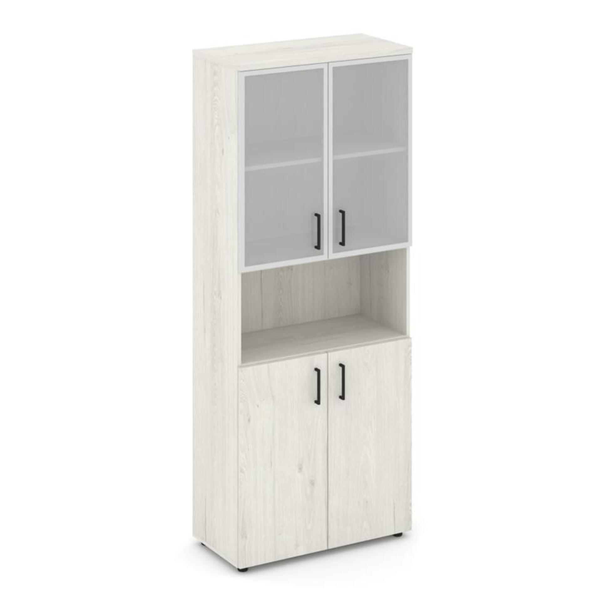 Шкаф высокий широкий (2 низких фасада ЛДСП + 2 низких фасада стекло сатин в раме) SN.STS-106