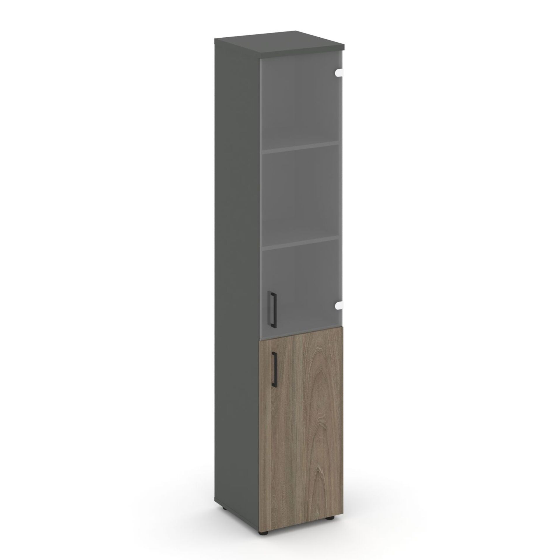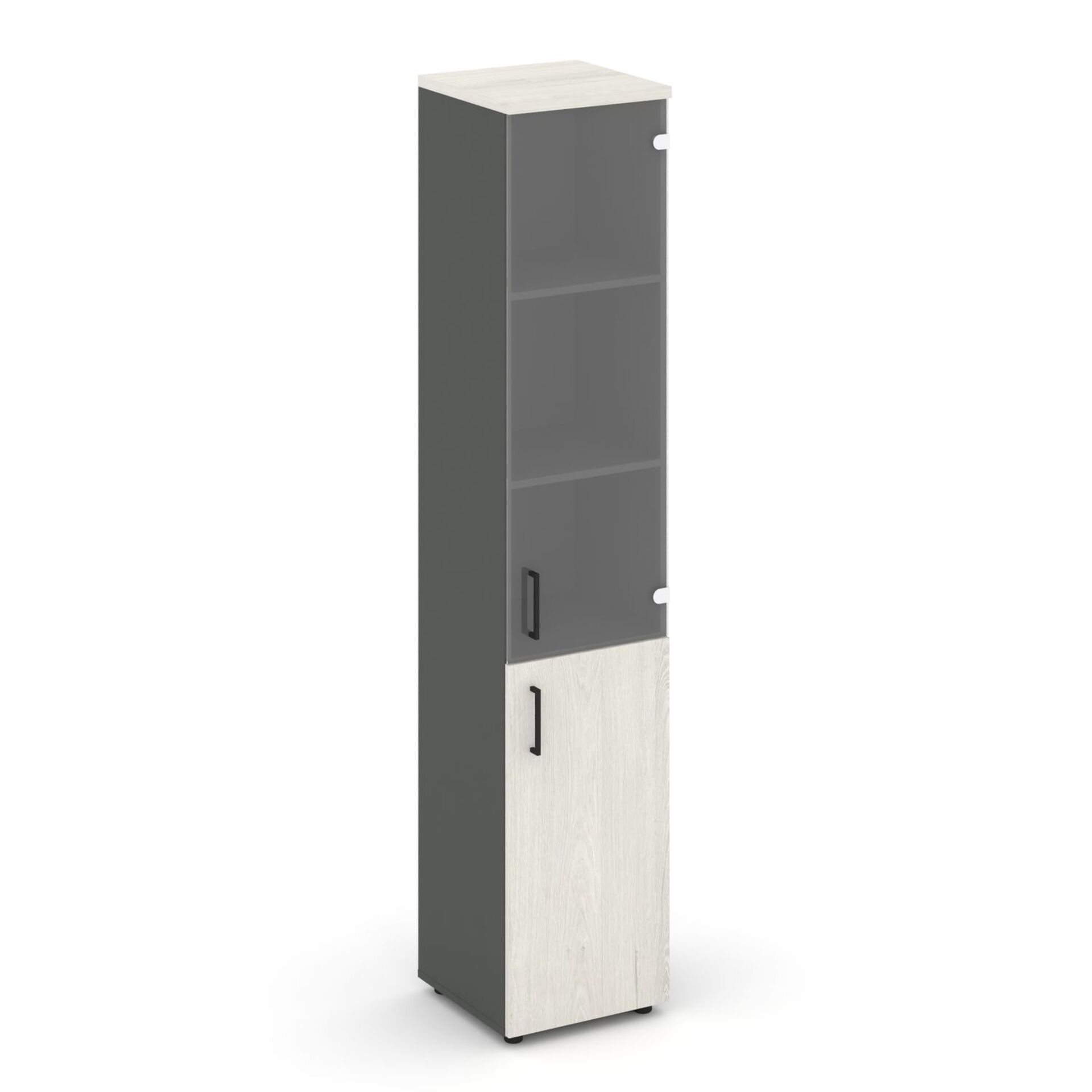 Шкаф высокий узкий правый (1 низкий фасад ЛДСП + 1 средний фасад стекло прозрачное) SN.STU.E-102(R)