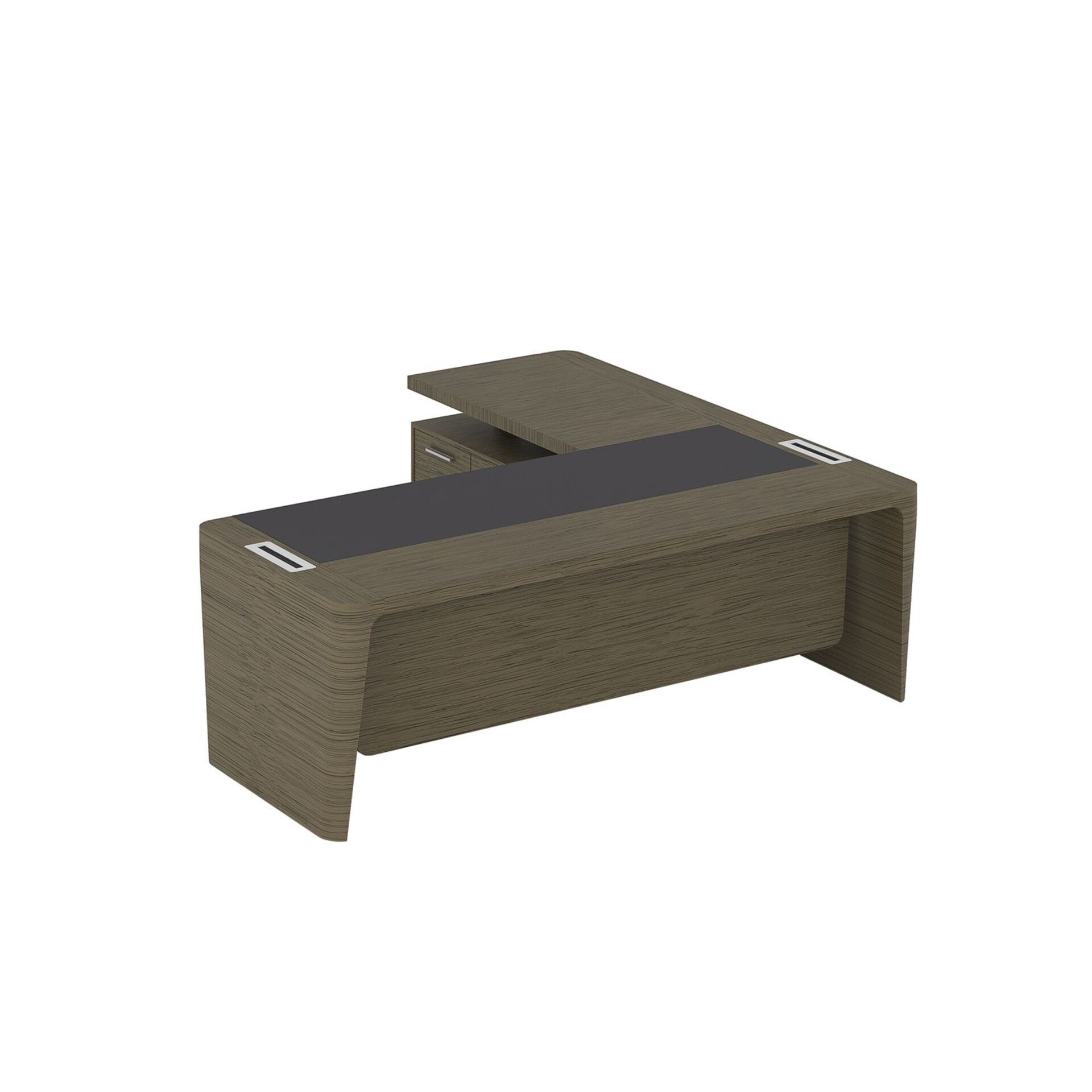 Стол для руководителя левый с кожаным бюваром, приставкой на большой тумбе и фронтальной панелью ПМ 176