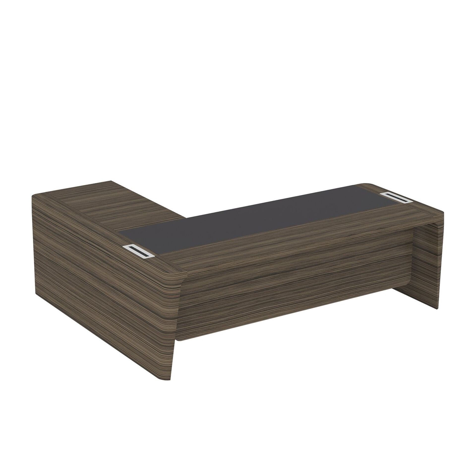 Стол для руководителя правый с кожаным бюваром, приставкой на малой тумбе и фронтальной панелью ПМ 185