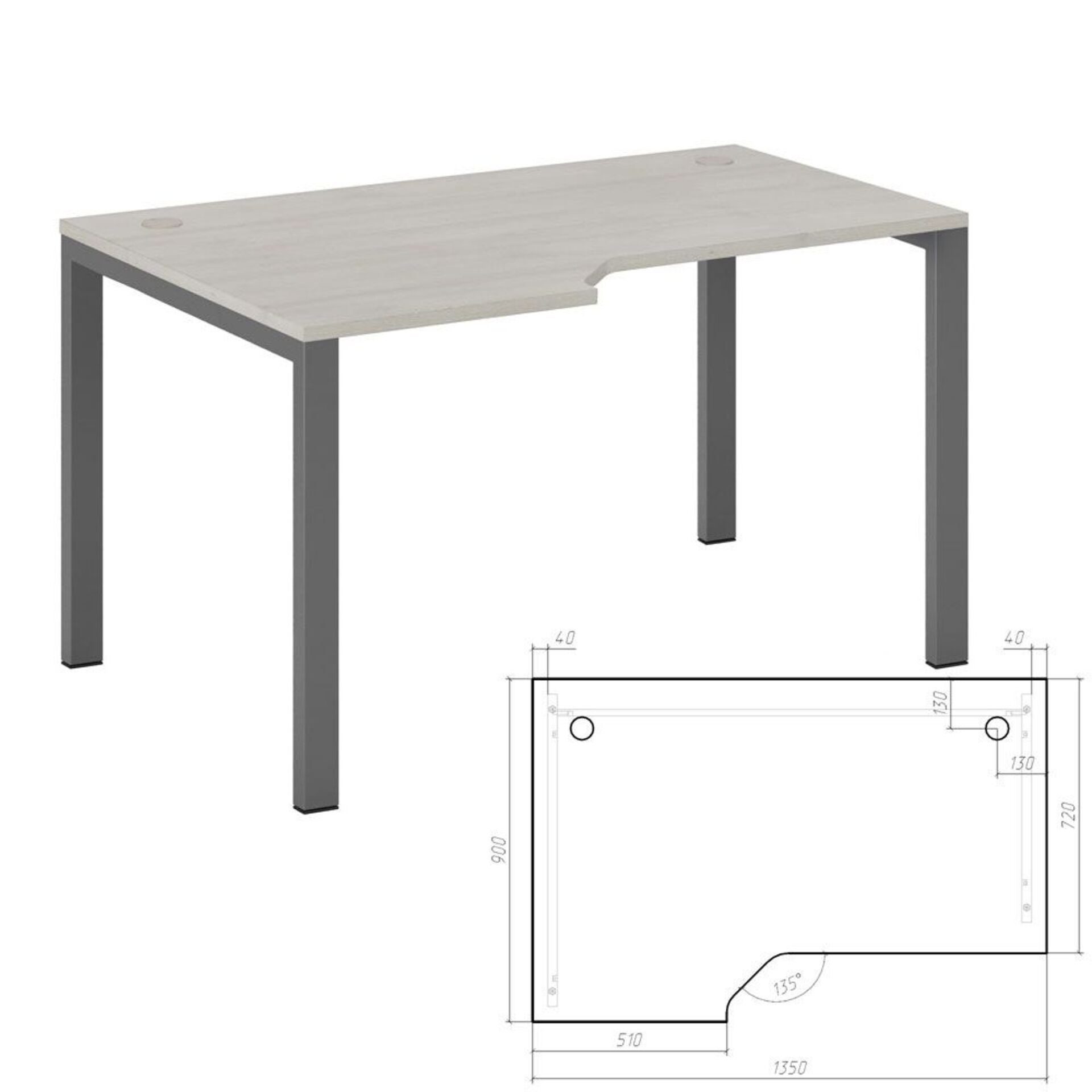 Стол эргономичный левый на металлоопорах NLN363224