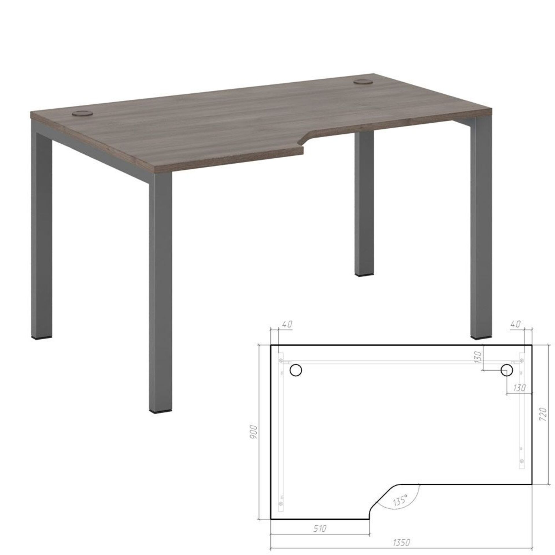 Размеры (ШхГхВ): 135x90x75 см.