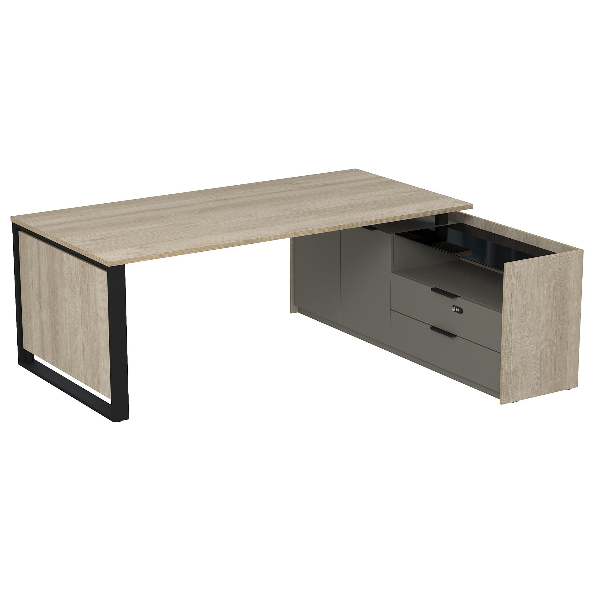 Стол рабочий на опорной двусоставной тумбе, с ящиками (метабокс), с код замком 15СОД-КЗ.2010