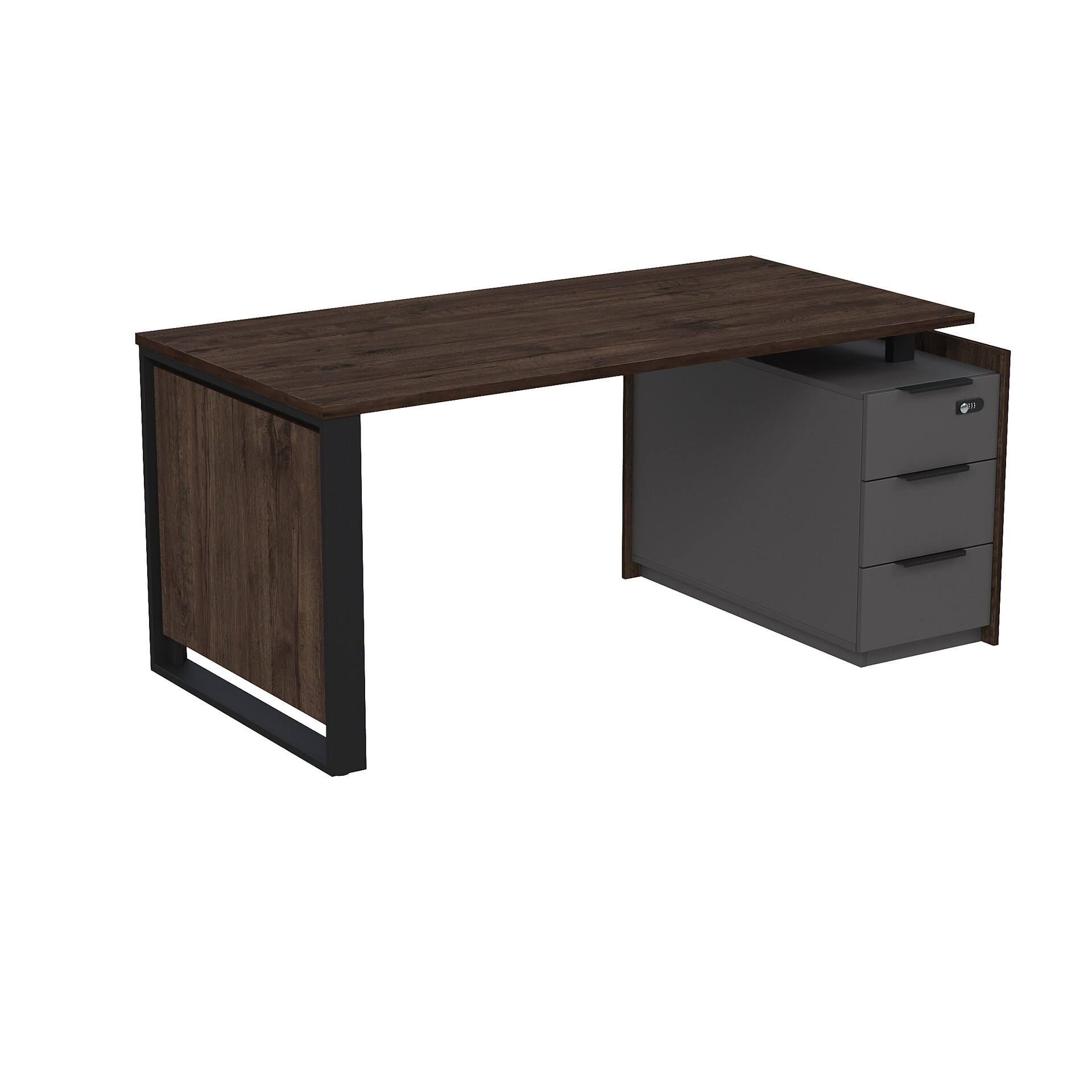 Стол рабочий на опорной угловой тумбе, с ящиками, с код замком 15СОУ-КЗ-ШД.1608