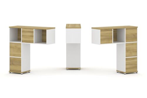 Стол рабочий на опорной угловой тумбе, с ящиками (метабокс), с замком 15СОУ.1408