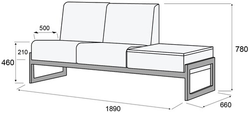 Диван 2-х местный, со столиком, правый, Сигма Люкс Сигма Люкс Д2Ст