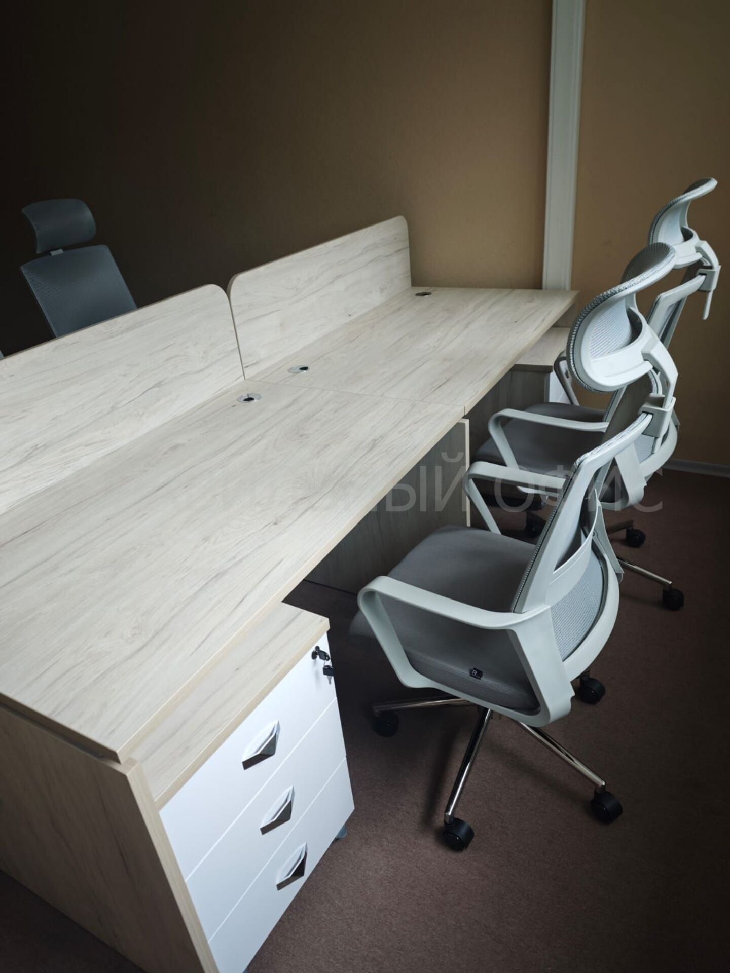Наша команда успешно реализовала проект по созданию комфортного и функционального рабочего пространства для команды ООО «Флекс». Задача заключалась в том, чтобы на ограниченной площади организовать четыре полноценных рабочих места, сохранив ощущение простора, легкости и обеспечив сотрудников всем необходимым для продуктивной работы.